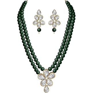 Shining Diva Fashion 18k Gold Plated Kundan and Pearl Studded Jewellery Set | Latest Stylish Fancy Traditional Jewellery | Wedding Party Multilayered Necklace Set
