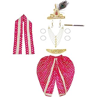 ITSMYCOSTUME Krishna Dress with Light Pearl Jewellery and Mukut Sett|Janmashtami Complete Dress for Baby Kanha Boys & Girls