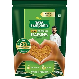 Tata Sampann Pure Raisins Seedless/Kishmish, 500g, Source Of Potassium, Premium Dry Fruits, Green Raisins