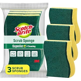 Scotch Brite Scrub Sponge -Pack of 3 for everyday utensil cleaning (Kitchen Scrubber with Sponge)