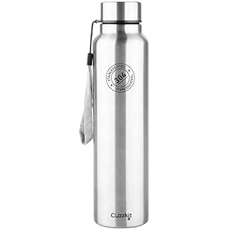 Clazkit Stainless Steel Water Bottle, 1000 ml – Single-Walled, Spill-Proof, Food Grade Steel | Fridge, Office, School, Travel, Gym, Car (Silver)