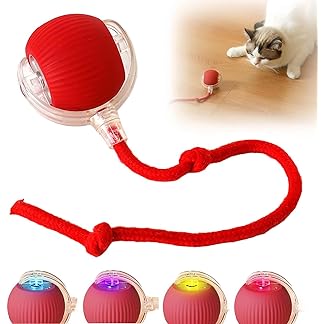 Interactive Cat Toy – Cat Toys for Indoor Cats Smart Silicone Rolling Ball with Tail,Bird Sound,Obstacle Avoidance and Motion Activated,Kitten Puzzle Toys for Bored Indoor Adult Cats & Dogs (Red)