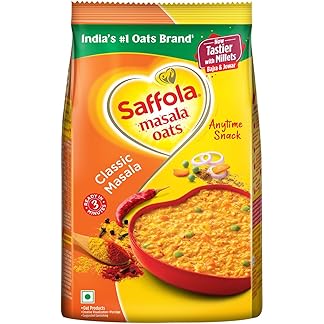 Saffola Masala Oats | Classic Masala | Tasty, Anytime Snack | Ready in 3 mins | Millets Goodness- with Bajra & Jowar | No maida , No added preservatives | helps manage weight |500g