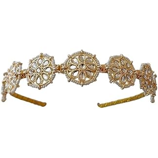 Floral Kundan Studded Matha Patti Sheesh Patti, Traditional Golden Wedding Hairband, Celebrity-Inspired Headpiece
