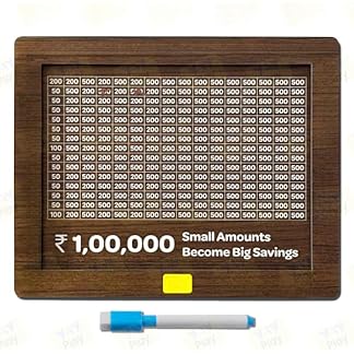 THE GRANDEUR Wooden Money Piggy Bank, Money Saving Box, Gullak with Savings Chart, 100000 Rupees Goal Tracker, Cash Collection Bank for Kids and Adults (Self Assembled)