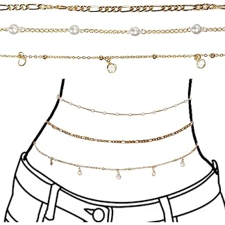 3pcs Waist Chain, Adjustable Gold Plated Waist Chain For Women For Saree, Stylish Pearl Multilayered Belly Chain For Women And Girls, Hip Chain For The Waist Bikini Jewelry