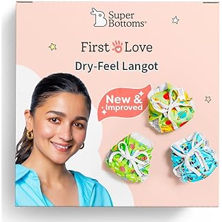 Superbottoms First Love Dryfeel Langot For Newborn Baby | No Mess Langot | Premium Cotton Padding (No Sponge) | Nappy for Diaper-free Time | 0-9M | Newborn Essentials | Day Dreamer | Upto 5KG | 3Pcs