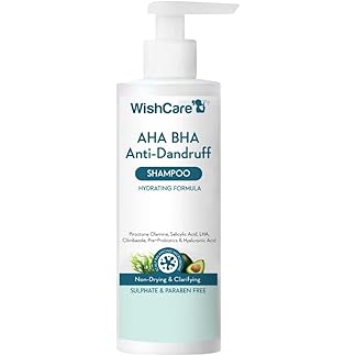 WishCare Hydrating AHA BHA Anti Dandruff Shampoo For Women & Men- Piroctone Olamine, Salicylic Acid, LHA, Climbazole, Pre+Probiotics & Hyaluronic Acid – Paraben & Sulphate Free Shampoo 250ml