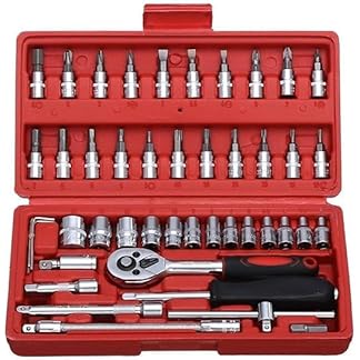 Quicknik Heavy Duty 1/4″ Combinational Ratchet Socket Wrench Spanner 46 Pieces Chrome Vanadium Hand Tool Kit Set For Repairing Work, DIY, Auto Repairs Car & Bike