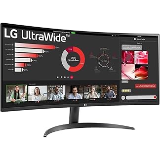 LG 34 Inches 21:9 Curved Ultra Wide Monitor, WQHD(3440 x 1440 Pixels), sRGB 99%(Typ), HDR 10, Dual Controller, PBP, Flicker Safe, Smart Energy Saving, HDMI, DP, Head Phone Out,Tilt, Black, 34WR50QC