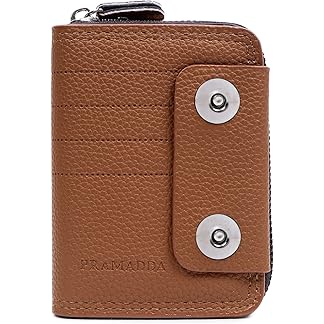 Pramadda Pure Luxury 18 Slot RFID PU Leather Credit Debit Card Holder Wallet Money Zipper Coin Purse for Men & Women | Corporate Gift. (Vintage Khaki)