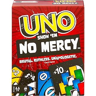 Mattel Games UNO Show ‘em No Mercy Card Game for Kids, Adults & Family Parties and Travel with Extra Cards, Special Rules and Tougher Penalties.