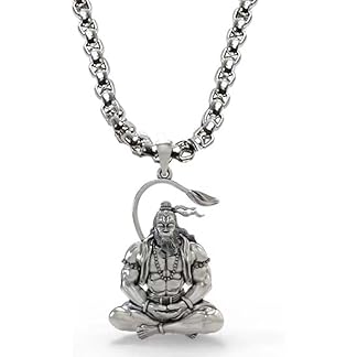 BEAUTIVIA Unisex Stainless Steel Hindu God Lord Mahavir Mahabali Shri Bajrangbali Sankat Mochan Ram Bhakt Pavan Putara Sitting Meditation Yoga Hanuman Ji Locket Pendant Necklace With Box Chain