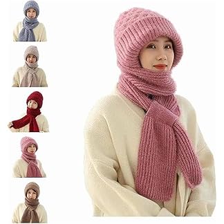 Sweezee Enterprise® Women’s 2-in-1 Integrated Hat & Scarf, Windproof Winter Woolen Cap with Ear Protection, Cold-Resistant Fleece Lining, Soft & Comfortable for Winter Activities Multicolour