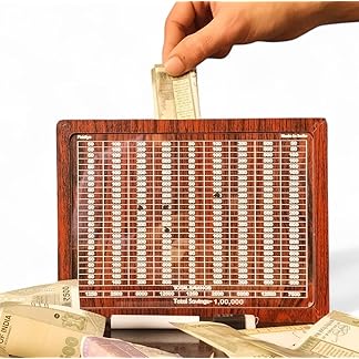 Fiddlys Wooden Money/Piggy Bank, Money Coin Box for Kids/Children, Savings Challenge Box, Cashbox, Cash Vault Wooden Savings Box,Wooden Coin Piggy Bank (Wood, Rs 1,00,000) Reusable/Interchangable