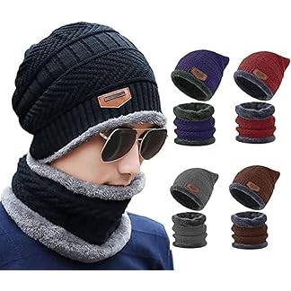 Woolen Hat Cap,Woolen Neck Warmer Scarf Men & Women Winter Woolen Cap Hat Woolen Neck Warmer Scarf Set for Men & Women Velvet Neck Scarf Free Size