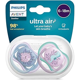 Philips Avent Pacifier Ultra air | Lets Your Baby’s Skin Breathe | Orthodontic & BPA Free | 2 Pack | 6-18m | SCF085/61