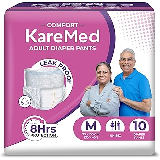KareMed Comfort Adult Diaper Pants, Medium 75-100 Cm (30″- 40″), 10 Count, Unisex, Leakproof, Elastic Waist, Wetness Indicator