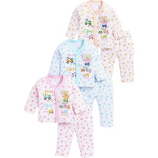 STYLETREND Baby’s Boy’s Girl’s 100% Cotton Vests, Jhabla T-Shirt with Pyjama Pant Dress Set of 3 Full Sleeves Infant Toddler New Born Baby Clothes