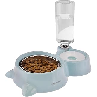 Amazon Basics 2 in1 Pet Feeder Food and Water Dispenser | Stainless Steel Bowl | Automatic Water Dispensing Mechanism | Suitable for Cats and Dogs