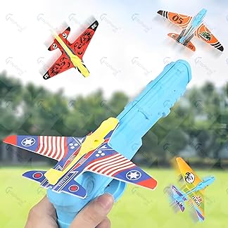 GRAPHENE Airplane Launcher Toys for Kids, 1 Launchers and 4 Foam Glider, Indoor Outdoor Flying Toys for Boys Girls 4-14 Years Old, Plane Party Favors Birthday Gifts for Toddlers