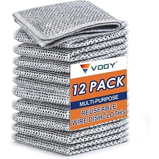VOOY 12 Pack Non-Scratch Wire Dishcloth, Multipurpose Wire Dishwashing Rags for Wet and Dry, Easy Rinsing, Reusable, Wire Cleaning Cloth for Kitchen, Sinks (Pack of 12)