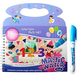 GLUN® Children’s Cartoon Water Magic Painting Book with Marker, 15 Different Exploration Scenes, Different Theme Magic Book (RANDAM Book)