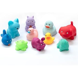 Amazon Brand – Jam & Honey Baby Bath Toy Set of 10 for Toddlers I Colorful Combo of Farm Animals I Floating Bath Chuchu Toys (Multicolor)