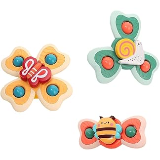 Bumtum Baby Spinner Toy | Baby Bathing Waterproof Toy Glass Sticking Toy 3 Pcs for Babies, Infant, Toddlers & Kids (Multicolour)