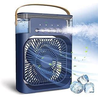 One94Store Portable Humidifier Mini AC, Table Fan, Desk Fan with USB-Powered, 3 Speed Modes, Mist Function, 7 Colors LED Light, 1/2/3 H Timer Personal Use for Office, Home, Dorm, Travel, Office(Blue)
