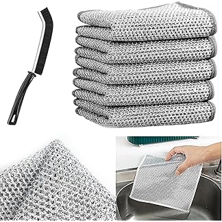 SKYTONE 3 Pack Non-Scratch Wire Dishcloth & Gaps Cleaning Brush, Multipurpose Wire Dishwashing Rags for Wet and Dry, Easy Rinsing, Reusable, Wire Cleaning Cloth for Kitchen, Sinks, Pots, Pans (2)