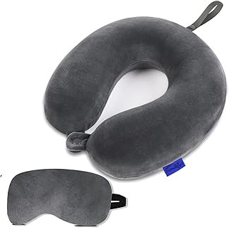 Trendifyr ™ Travel Neck Cushion Pillow with Eye Mask | Super Soft Material with 5 Years Warranty | for Travel & Sleep in Flights, Train, Car (Grey with Eye Mask)