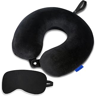 Trendifyr ™ Travel Neck Cushion Pillow with Eye Mask | Super Soft Material with 5 Years Warranty | for Travel & Sleep in Flights, Train, Car (Black with Eye Mask)