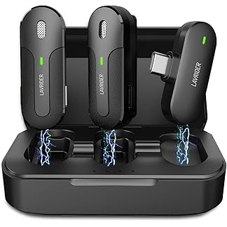 LAVRIDER Wireless Mic with with Charging Case, Noise Reduction Lapel Mic for Video Recording, YouTube, Facebook, Live Stream (Dual Android)