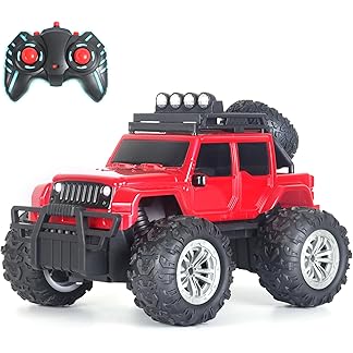 Popsugar Off Roader Rechargeable Remote Control Monster Truck with 2 Speeds and 4 Headlight Modes | Lithium Battery | C-Type Charging | Remote Control Car for Kids | Made in India, Red with Black