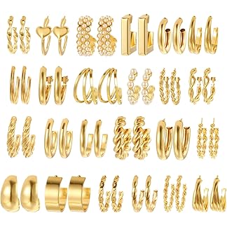 Shining Diva Fashion 24 pairs Combo Celebrity Inspired Trendy Latest Stylish Gold Plated Geometric Twist Pearl Hoop Dangle Earrings for Women and Girls