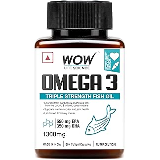 WOW Omega-3 Fish Oil 1000 mg Triple Strength 550mg EPA 350mg DHA, Burpless, Mercury free, Ideal for Keto Diet