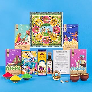 Phool Holi Colour – Braj Collection with Mishrambu Premium Thandai I (Pink, Green, Blue, Yellow) I Skin Friendly & Easy to Remove from Skin I (400gms Colour + 100 ml Premium Thandai)