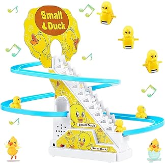 GRAPHENE 3 Duck Slide Toy Set, Funny Automatic Stair Climbing Ducklings Cartoon Race Track Set Little Lovely Duck Slide Toy Escalator Toy (Small Duck Track Racer)