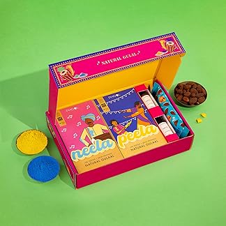 Phool Holi Colour – Rangeela Gift Box – Pack of 6 Natural Colours I 600 GMS (6 Colour x 100 GMS) Pink, Green, Blue, Yellow, Orange & Purple I Skin Friendly and Certified I Easy to Remove from Skin