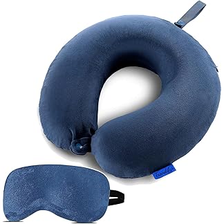 Trendifyr ™ Travel Neck Cushion Pillow with Eye Mask | Super Soft Material with 5 Years Warranty | for Travel & Sleep in Flights, Train, Car (Blue with Eye Mask)