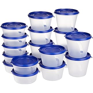 Amazon Brand – Solimo Nestable & Stackable Polypropylene Container Set, Round, Set of 18, Blue