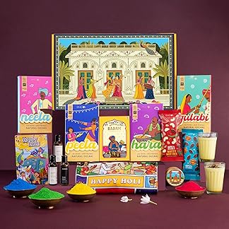 Phool Holi Colour – Milan Giftbox I Pack of 14 I 400 GMS Holi Colour, Thandai, T Shirt, Chandan Tika,Kimirica Skin Friendly & Certified Herbal & Organic Gulal