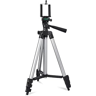 Amazon Basics 3110 Aluminium Lightweight Tripod with Mobile Phone Holder, 3-Way Pan Head | for All Smart Phones, Cameras, Ring Lights, Panel Reflectors, Umbrellas & Flashlights with Carry Bag, 110 cm