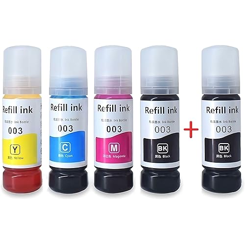 003 Compatible Refill Ink for Epson L3110, L3150, L3250, L3252 L3115, L3116, L3101, L3210, L3215, L3216, L3151, L3152, L3156, L5190 Printer – Compatible Ink Bottle for Epson 003 Ink Code (003 Set+BK)
