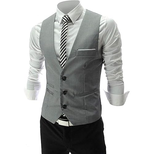00RA WITH AS LOGO Men Slim Fit Cotton Blend Waistcoat Half Jacket (Silver, 36)