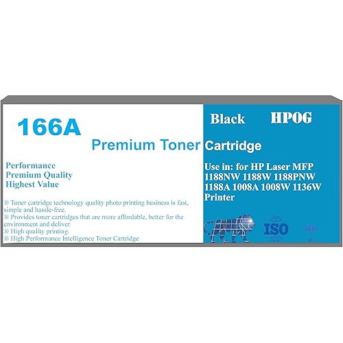 166A W1660A Toner Cartridge Compatible for HP Laser MFP 1188NW 1188W 1188PNW 1188A 1008A 1008W 1136W Printers High Yield Replacement Refill Toner Cartridges (with Chip) Black