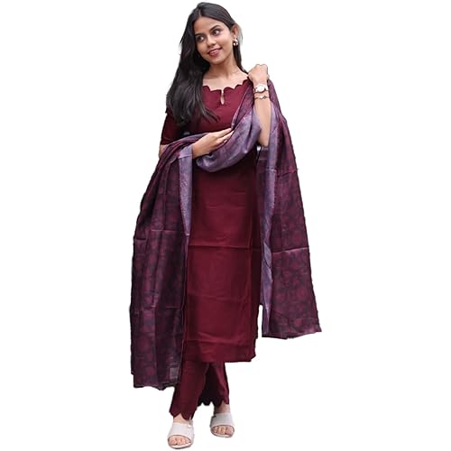 40572 reviews for 24 Carat Suit Women’s Roman Silk Straight Cut Kurti Pant with 3/4th Sleeves Round Neck Regular Fit calf Length and Dupatta Set