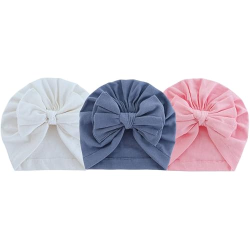 3 Piece Baby Bow Cap -Turban Bow Cap Baby Bow Cap -Turban Bow Cap,Baby Cap, Turban Cap, Baby Headwear Suitable for 0 to 12 Months Baby Multicolour