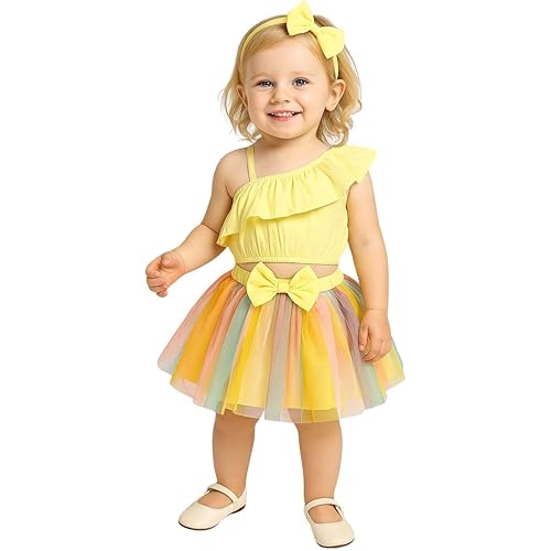 3553 reviews for A.T.U.N. (All Things UBER Nice) Baby Girls One Shoulder Crop Top with Printed Skirt & Matching Headband Set | 3 Piece Outfit Set for Kids